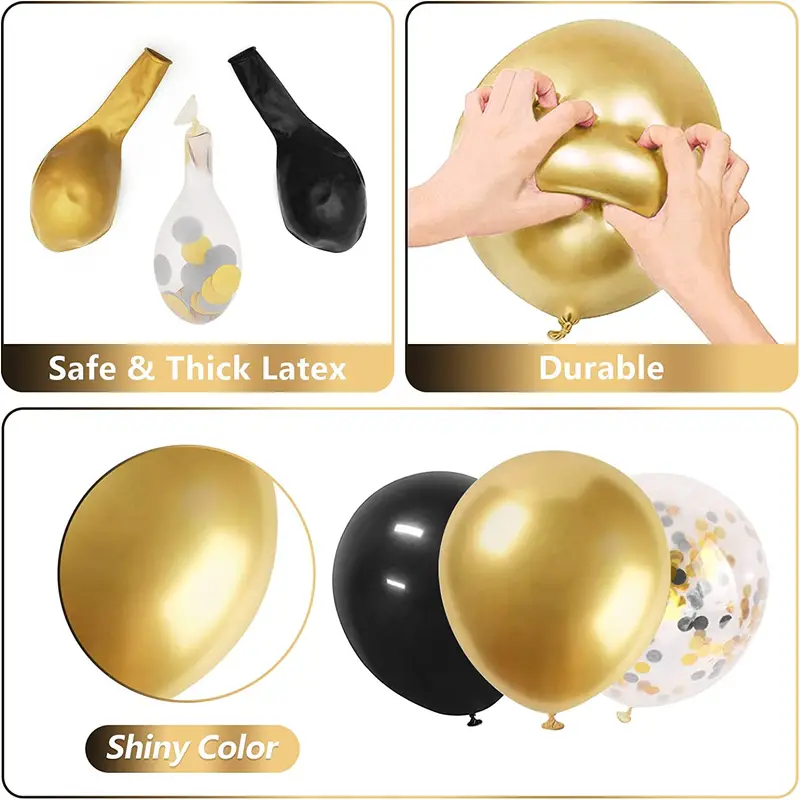 Crafted from thick, durable latex and premium confetti materials, these balloons are built to last. The metallic and confetti designs add a luxurious touch, and the balloons can be filled with air or helium for versatile styling.