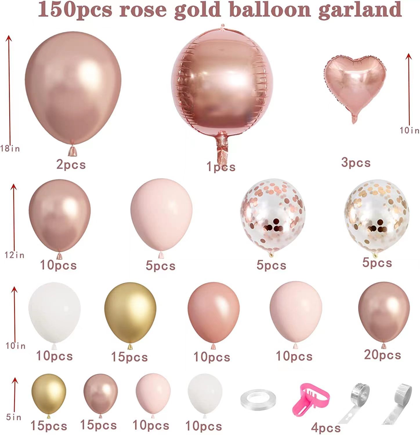 Celebrate in style with the 150-Piece Rose Gold, Pink, White, and Gold Confetti Balloon Garland Arch Kit—the ultimate décor for a glamorous and unforgettable event!