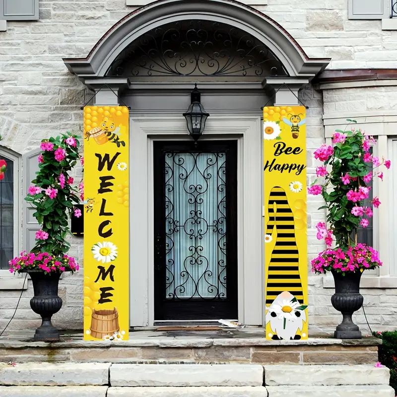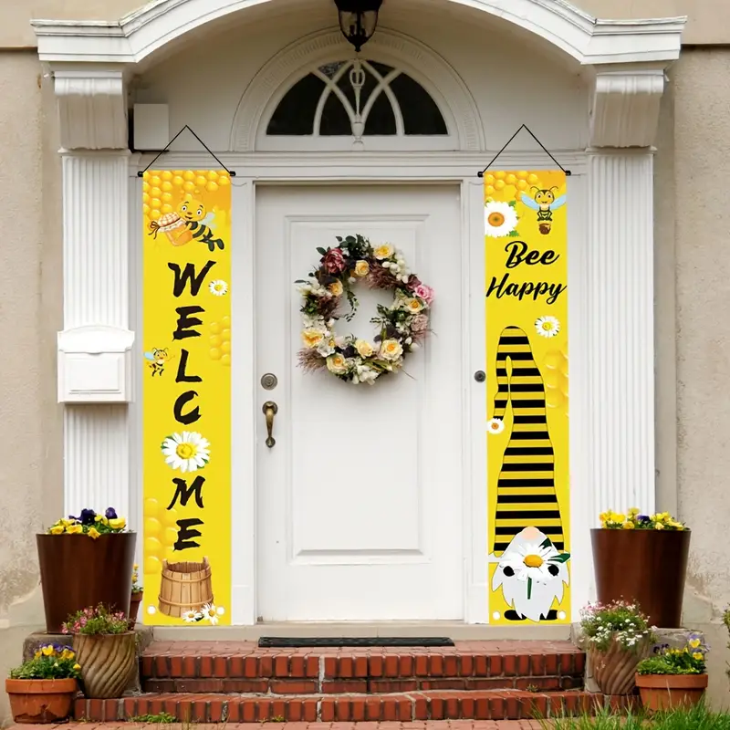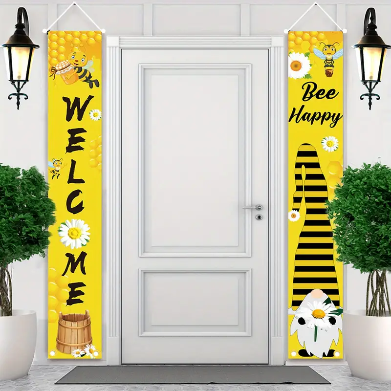 2pcs, Welcome Bee Happy Banner (71in*12in/180cm*30cm)