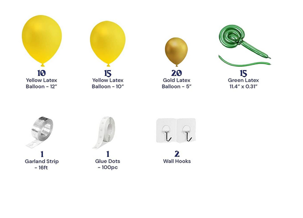 5-Inch Green, Yellow, and Gold Latex Balloons – Perfect for adding texture and filling in balloon arches.