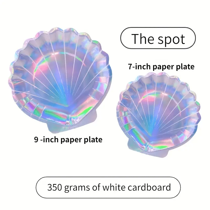 8pcs/pack, Party Shaped Plate Cutlery Disposable Paper Plate, Laser Shell Paper Plate Set