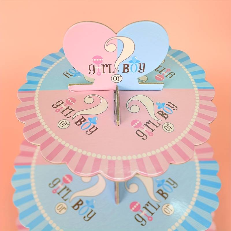 1pc, Gender Reveal Three-layer Paper Cake Stand